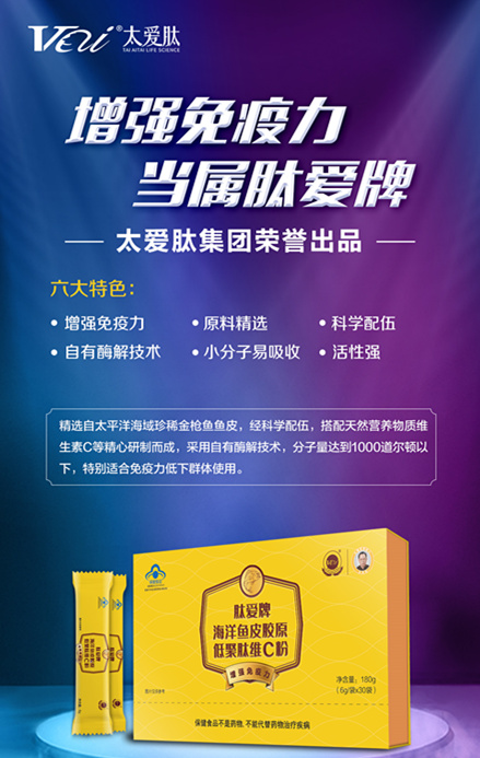 【產(chǎn)品名稱】:肽愛牌 海洋魚皮膠原低聚肽維C粉 太愛肽藍(lán)帽產(chǎn)品